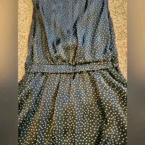 Banana Republic Factory Sleeveless Polka Dot Dress White & Navy Blue, Size 0. V-Neck dress with bust detail and two-tiered ruffle skirt. There is also a sheer stripe detail on the dress. See last photo. Excellent condition!