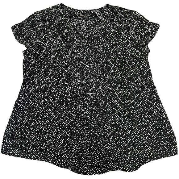 Banana Republic Factory Top Black White Dot Prink Pintuck Short Sleeve Women's M