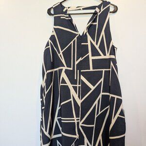 Banana Republic Factory Trapeze Mini Dress – Geo Print Black Beige, Size XL