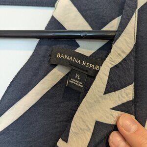 The Banana Republic Factory Trapeze Mini Dress in size XL features a stylish geometric pattern in black and beige, making it perfect for the summer and spring seasons. This sleeveless dress has a V-neckline and a pullover closure, offering a comfortable and easy-to-wear silhouette. Made from a blend of rayon and nylon with a knit fabric type, it has a stretchy material that is ideal for travel and casual occasions. The short dress length and Mini style from Banana Republic ensure a chic and trendy look for any woman's wardrobe.