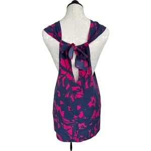 Banana Republic Factory Tunic Top Deep V Keyhole. Ties at Back of Neck. Could be worn with a tank underneath or as a cover-up. Navy & fuschia abstract print.