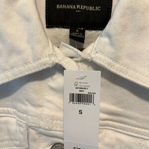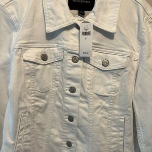 NWT. Stylish white jean jacket by Banana Republic. Ideal for casual layering. Adds sophistication to any look.