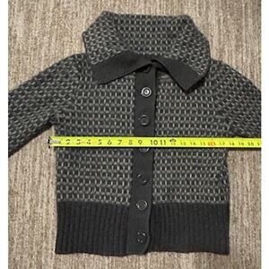 This thick sweater is perfect for cold weather--for either lounging or on the go. Please see picture for measurements. The cardigan is in great condition with no rips, tears or marks.