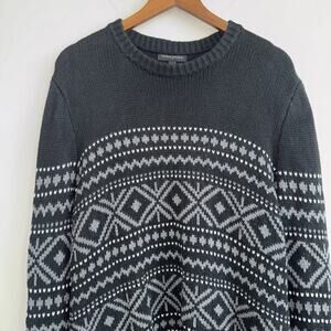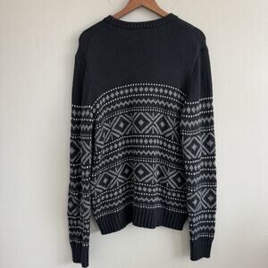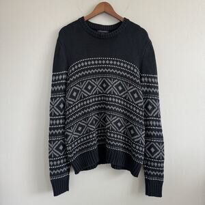 Banana Republic Fairisle Sweater Men’s Sz L Black Gray Knit Crewneck Wool Blend
