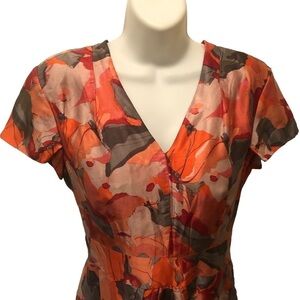 Banana Republic Fall Floral SILK Dress Sz. 4 (Small) Empire Waist POCKETS at Hip SS Sexy