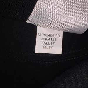 New condition! Never worn but the tags were removed. Black faux leather front panels and 2-way stretch fabric back panels. Simulated front pockets and functional back pockets. Single button and zipper front closure.