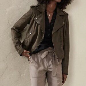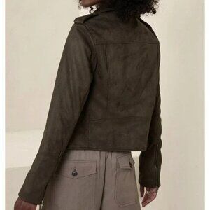 NWOT Banana Republic Faux Vegan Suede Motto Jacket in Falcon Brown (Brownish/Green), Size Medium Tall.