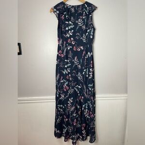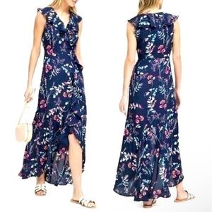 Banana Republic Faux Wrap Maxi Dress Navy Floral Ruffles