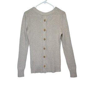 Banana Republic Filpucci Wool Cashmere Sweater Button Up Back V Neck Sz S Tan