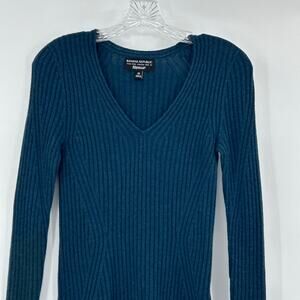 Banana Republic womens sweater in forest green. Made from Filpucci Italian yarn. Merino wool and cashmere blend. V-neck. Long sleeves. Medium weight. Size XS. Excellent used condition. No flaws detected. See measurements for proper fit.
