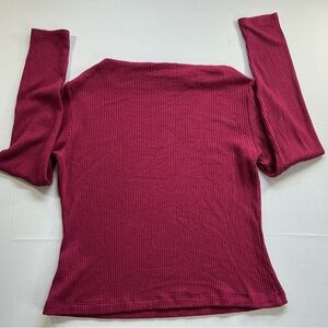 Banana Republic ribbed long sleeve top in a bright raspberry hue. Slim, fitted silhouette with stretchy knit. Boat neckline for a clean, simple look. Lightweight and easy to layer.