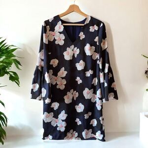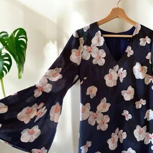Banana Republic Floral Bell-Sleeve Dress in Navy