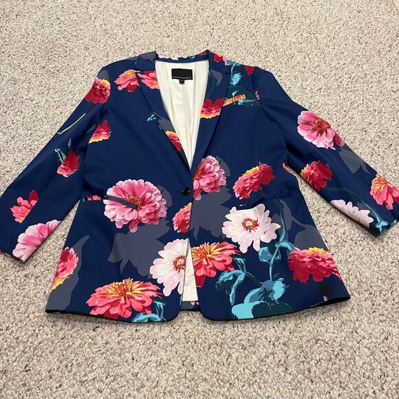 Banana Republic Floral Blazer Sz 14 Gerber Daisy Blue Pink Casual Preppy Spring