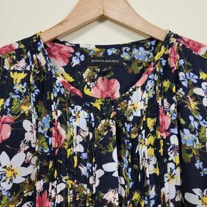 Banana Republic Floral Blouse Womans Size M Black Multi Relaxed Fit