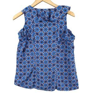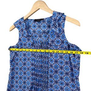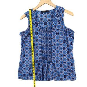 Banana Republic Floral Blouse Womens Blue Polyester Sleeveless Pleated Size S