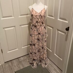 Banana Republic Floral Chiffon Midi Dress Pink Dark Brown 16531