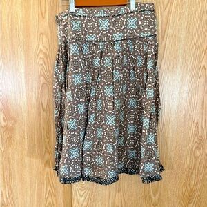 Chic Banana Republic embroidered swing midi skirt with a tan and turquoise floral pattern. Ideal for career and casual wear.
