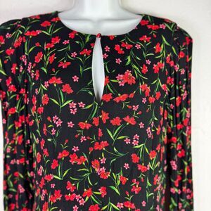 Banana Republic Floral Keyhole Dress Size 14 Tall Black Red Pink Green