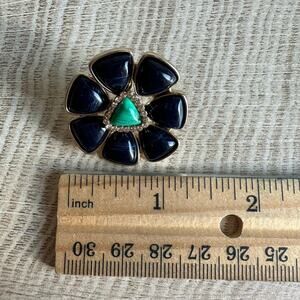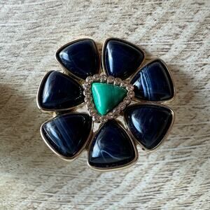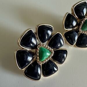 Banana Republic Floral Navy Turquoise Gold Tone Statement Earring