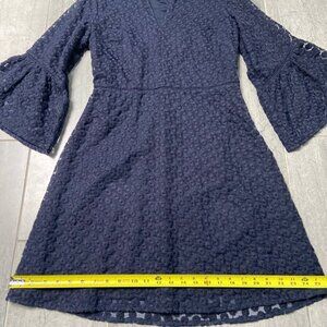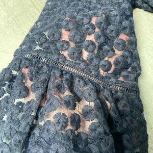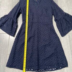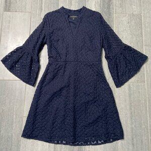 Banana Republic Floral Pinwheel Embroidered Lace Bell Sleeve Dress Navy Size 6
