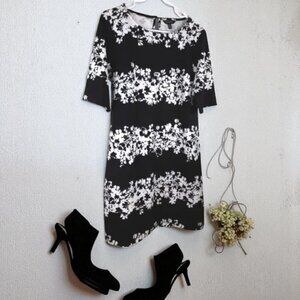 This is a gorgeous floral print dress by Banana Republic that is in like new condition. This dress features stunning print, short sleeves, and a keyhole in the back with button closure. This dress is crisp and clean with no flaws. It is a size 10. The lay flat measurements are pit to pit 20", waist is 19", length is 35", and the sleeve measures 6". All items are washed before shipping and come from a smoke and pet free home.