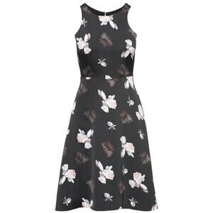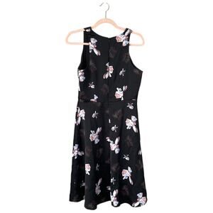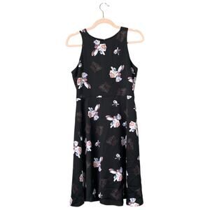 Banana Republic Floral Racerback Fit & Flare Black Dress Size 4 Party Skater