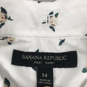 Banana Republic 14 Large L XL White Floral Riley Shirt Top Button Long Sleeve