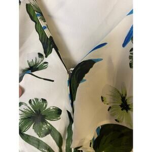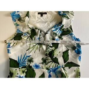 Banana Republic Floral Ruffle Faux Wrap Maxi Dress White Blue Green Sleeveless Excellent Preowned Condition