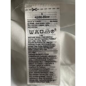 Partially lined, waist darts, and side zip with a hook-and-eye closure at V-neckline.