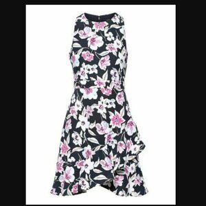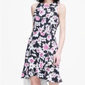 Banana Republic Floral Ruffle Wrap Racerback Dress Navy & Purple Floral 0