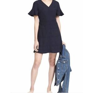 Banana Republic Flutter Sleeve Fit Flare Navy Dress with Pockets Size 4