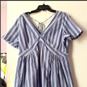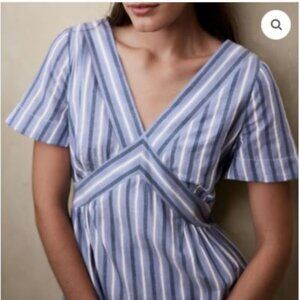 Banana Republic Flutter-Sleeve V-Neck Mini Dress (L) in Blue & White Stripe.