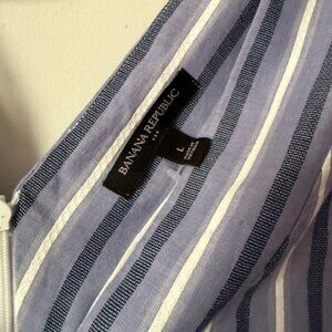 This beautiful Banana Republic dress is a must-have in your summer wardrobe. The blue and white stripes give it a fresh and modern look that is perfect for any occasion. The flutter sleeves add a feminine touch while the fit and flare style creates a flattering silhouette. Made for women of all ages, this knee-length dress is perfect for a day with friends or a special night out.