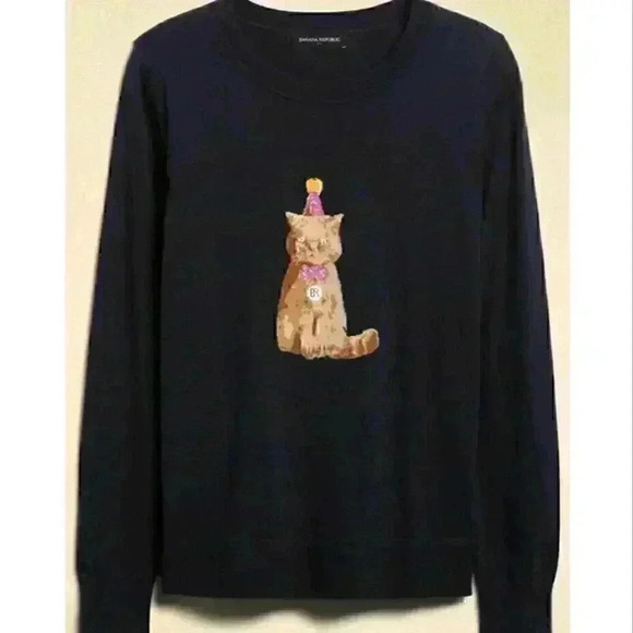 Brand New With Tags Beautiful Comfy BANANA REPUBLIC Forever Intarsia Pullover Sweater Party Cat