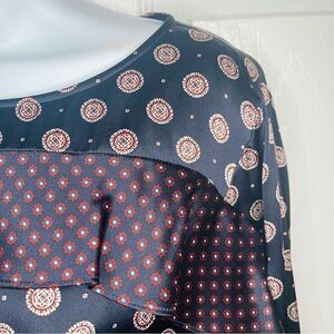 Banana Republic Foulard Ruffle Yoke Sleeve Shift Silk Dress Navy Burgundy 4