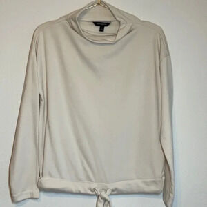 Banana Republic Funnel Neck Tie Waist Sweatshirt Cream Small