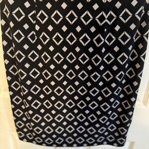 Step into effortless style with this Banana Republic sleeveless sheath dress featuring a striking geometric diamond print. Designed in a flattering classic fit, making it perfect for work, brunch, or evening occasions. The bold black-and-white pattern is accented by a solid black waistband that defines the silhouette and adds a touch of elegance.