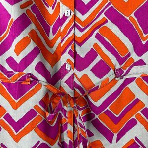 Banana Republic Geometric Print V Neck Waist Cinch Button Up Sleeveless Dress 6