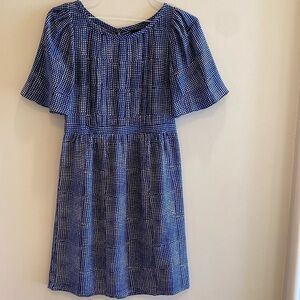 Banana Republic Geometric Silk Dress Flutter Sleeve Cream Navy Mid Blue size 4
