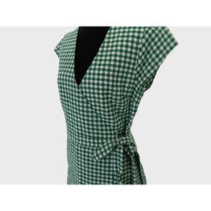 Banana Republic Factory Gingham Wrap Midi Dress 4 Green and White Cottagecore Picnic