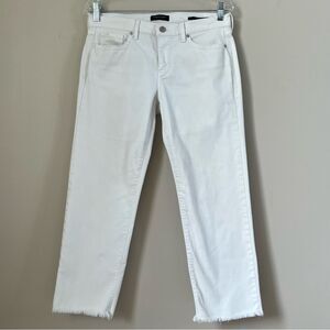 Banana Republic Girlfriend Ankle Crop Raw Hem Alabaster White Jeans SZ 28
