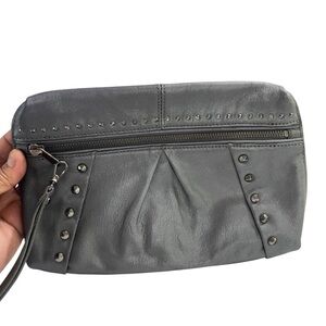 Banana Republic Goat Leather Zip Wristlet Clutch Wallet Wrist Strap Gray Studs