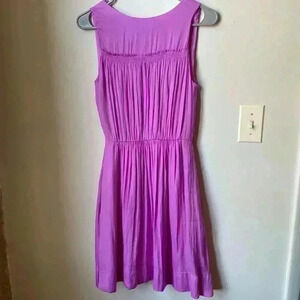 This gorgeous Banana Republic dress in a vibrant purple hue is the perfect addition to your office wardrobe. Featuring a flattering V-neck and a flowy silhouette, it’s designed for comfort and style. The cinched waist and pleated details create a beautiful shape that suits any occasion. Made of lightweight fabric, it’s ideal for transitioning from desk to dinner.