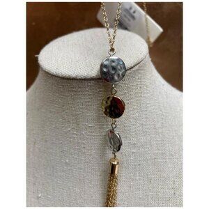 Banana Republic Gold Chain Necklace With Multicolor Beads & Tassel NEW