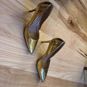 Banana Republic, gold heels with pointed toe. Small scuff on the right heel that is barely noticeable. See last pic. 3 inches high.