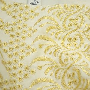 Ivory dress with gold fancy embroidery. Absolutely stunning! Pics don't do it justice. Great cocktail dress or for date night, a wedding, graduation...it's perfect.