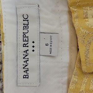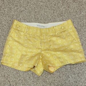 women's gold metallic shorts sz 6 from Banana Republic, fully lined. 3" inseam, 8.5" rise, 37" hips, 42% viscose, 39% cotton, 11% metallic fiber, 8% polyester. lined 100% polyester