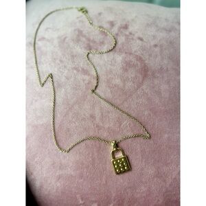 Banana Republic Gold Tone Padlock Lock Chain Pendant Necklace Costume Jewelry