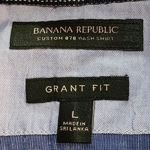 Upgrade your wardrobe with this Banana Republic Grant Fit Custom 078 Wash Shirt. Crafted from 100% cotton, this long sleeve shirt features a textured chambray-style blue fabric with a subtle speckled pattern for a refined yet casual look. Designed with a tailored Grant Fit, it offers a modern silhouette that's perfect for work or weekend wear. This versatile piece pairs effortlessly with jeans, chinos, or layered under a blazer. A must-have for fans of minimalist style and classic menswear.