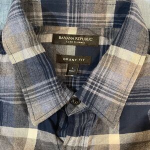 Banana Republic Grant Fit Men’s Large Blue Gray Plaid Button Down Long Sleeve